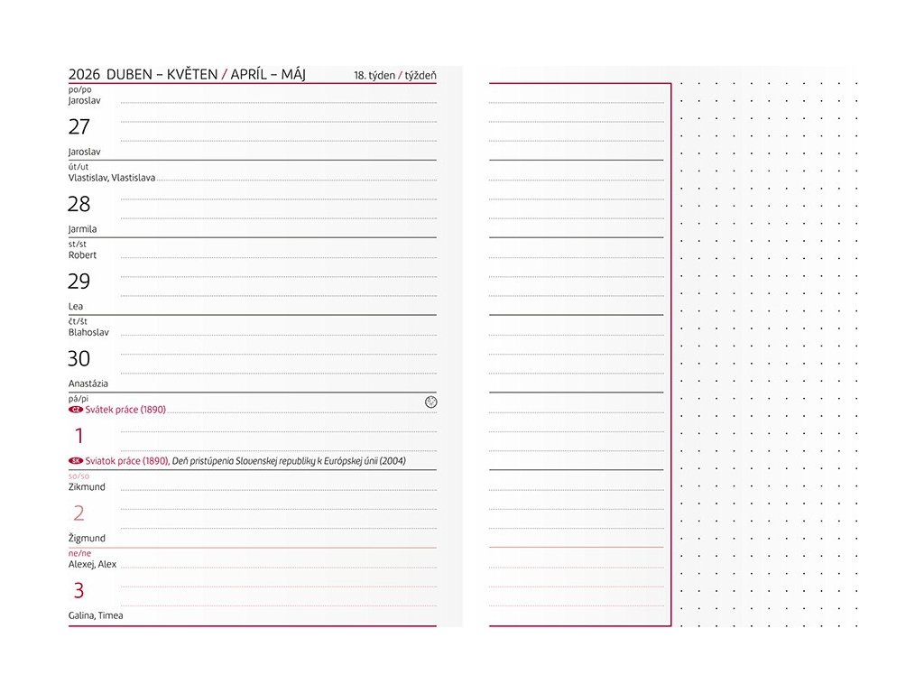 - Textilní stužka slouží jako záložka pro rychlé nalezení aktuálního týdne či důležité stránky 📖