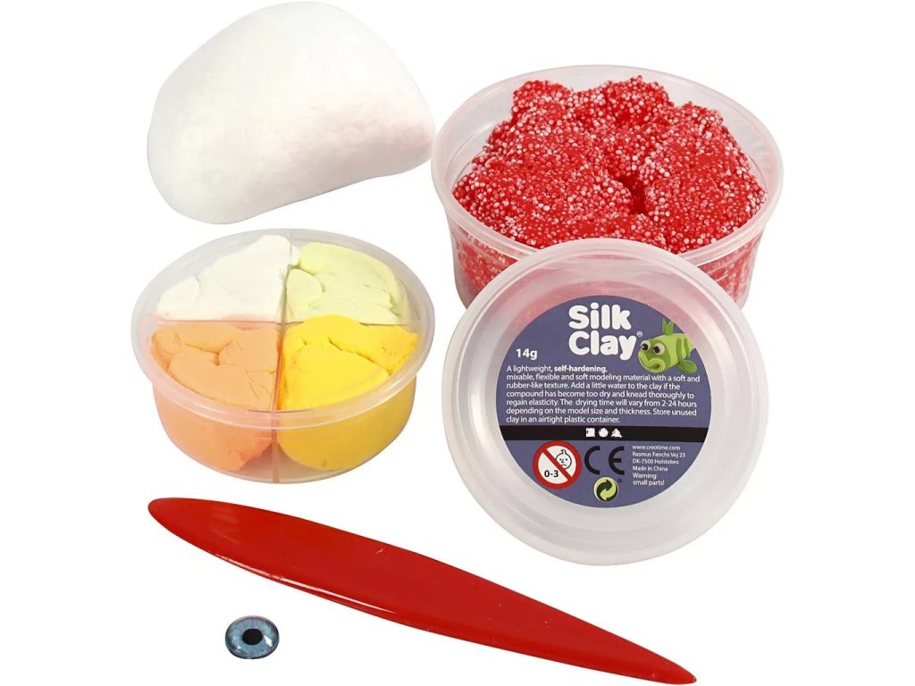 - Oči, modelovací nástroj, pěnová hlína a hedvábná hlína pro tvarování a detaily 🖌️