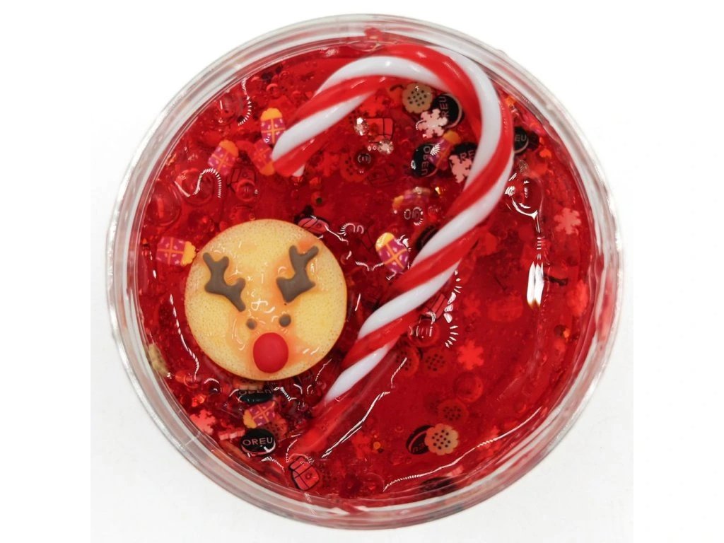150g gelového slizu, konfety, třpytky, plastové kuličky, 2 ks dekorace - vánočního cukroví, cukrová hůlka.