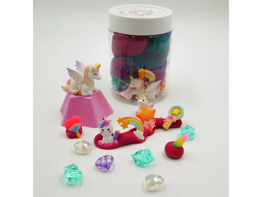 Milují vaše dcerky jednorožce? S touto dózou plnou mamolíny a krásných jednorožců jim určitě uděláte radost, která nezná mezí! 🌈✨ Pusťte se do tvoření a vytvořte si svůj vlastní kouzelný jednorožčí svět plný třpytivých dekorací. 💖