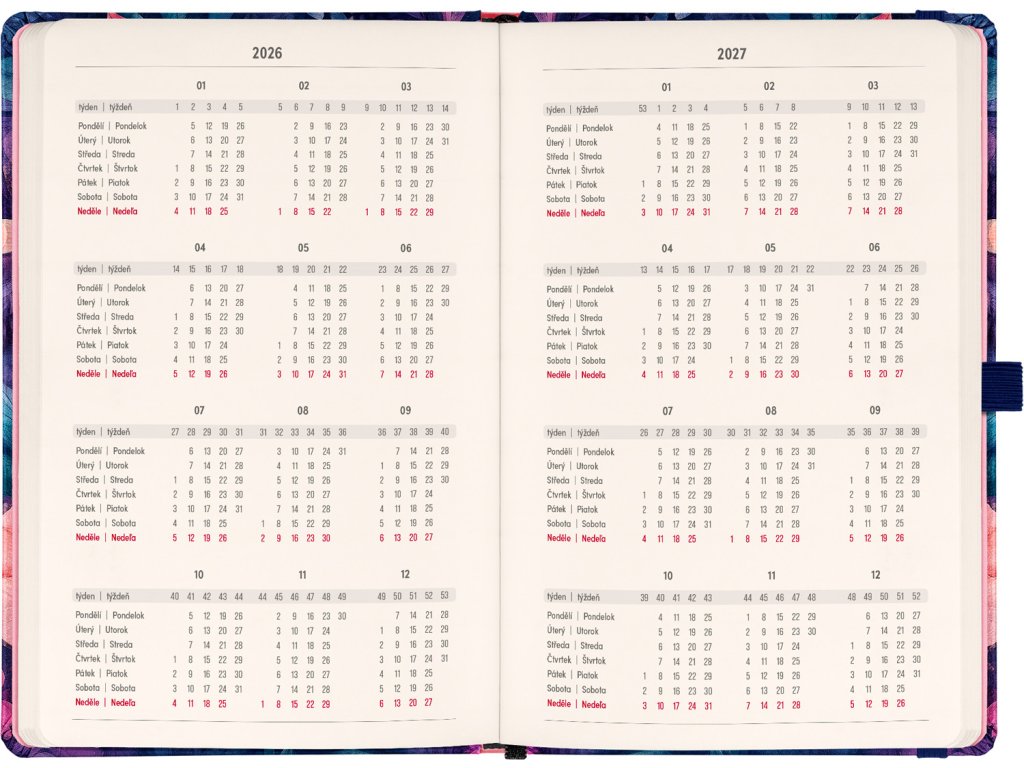 Romantické spojení diáře a zápisníku – ideální pro plánování i zaznamenávání nápadů v roce 2026.