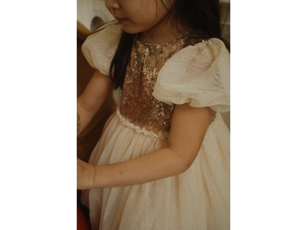• Krátké nabírané rukávy a vrstvená tylová sukně pro kouzelný vzhled