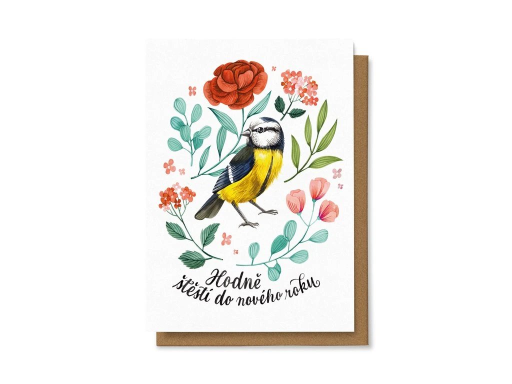 Vánoční přání - Hodně štěstí do nového roku, ptáček