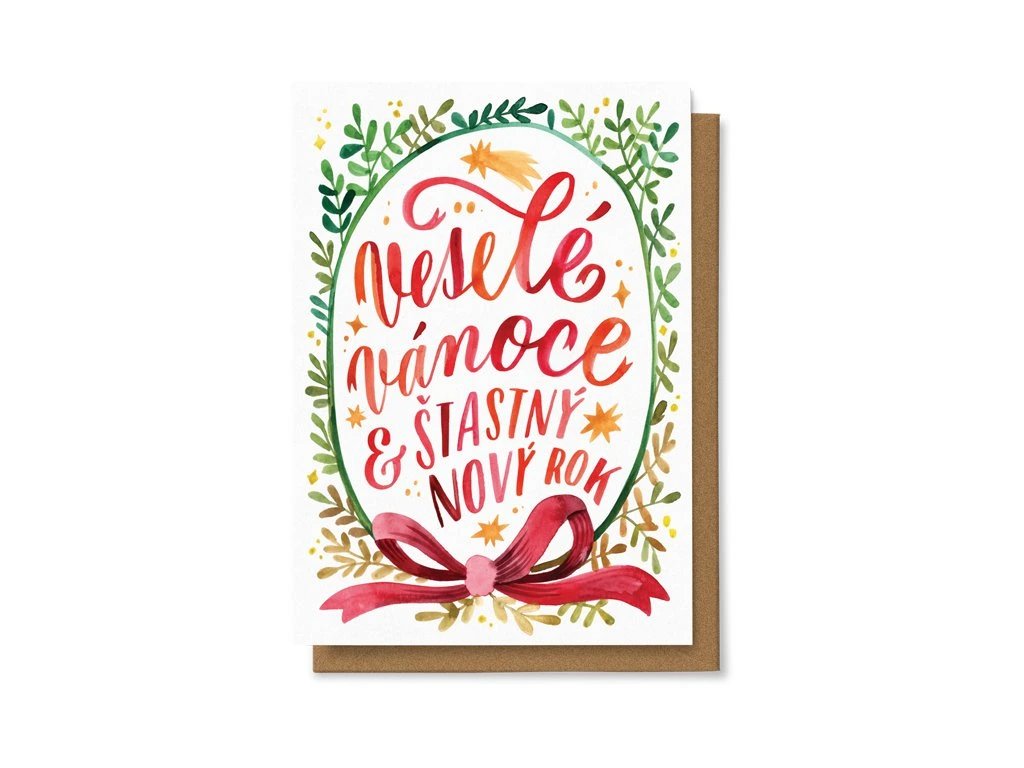 Vánoční přání - Veselé Vánoce & šťastný Nový rok, s mašlí